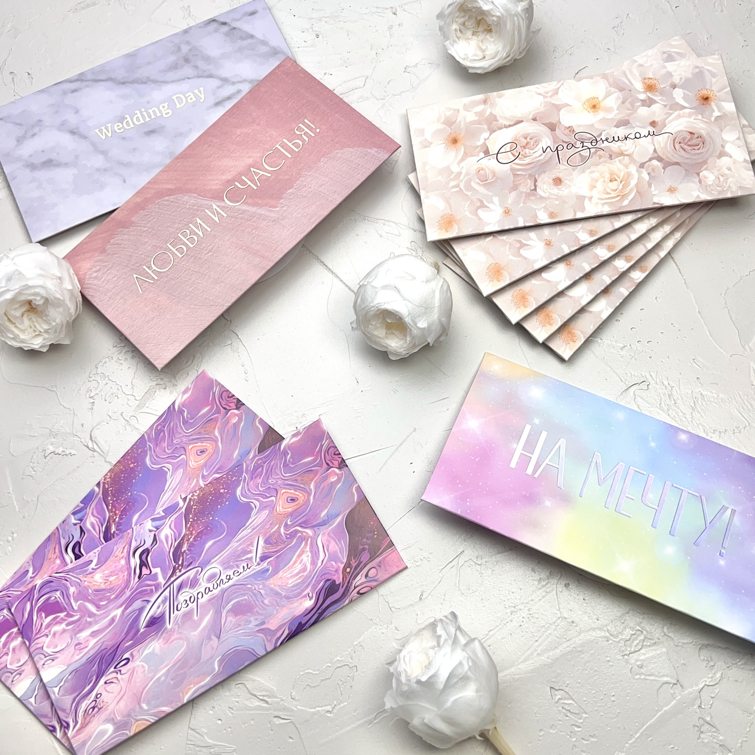 Конверт денежный с застёжкой - Фиолетовый с бликами "С днём рождения"